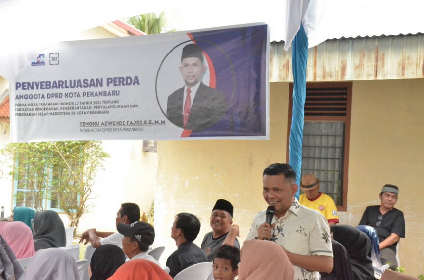 Cakaprakyat.com, PEKANBARU - Wakil Ketua DPRD Pekanbaru Tengku Azwendi Fajari memaparkan Perda Nomor 3 Tahun 2023 kepada masyarakat di Jalan Bougenville Kecamatan Sail pada Jumat (28/11).